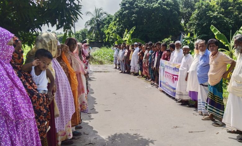 জলাবদ্ধতা নিরসনে সোনারগাঁয়ে পাঁচ গ্রামবাসীর মানববন্ধন